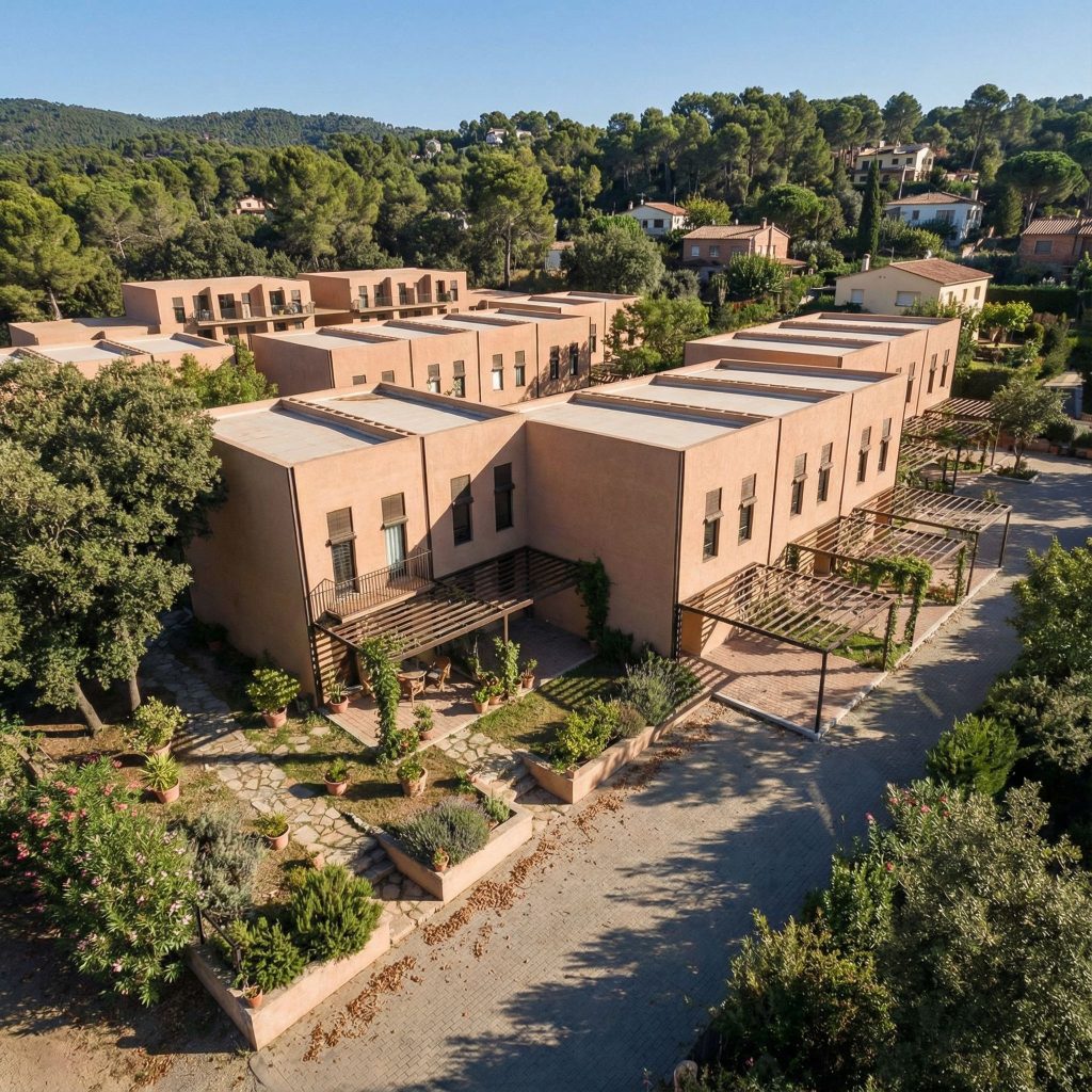 El conjunt es completa amb espais exteriors enjardinats, concebuts com una extensió natural de cada habitatge. Aquests espais permeten: